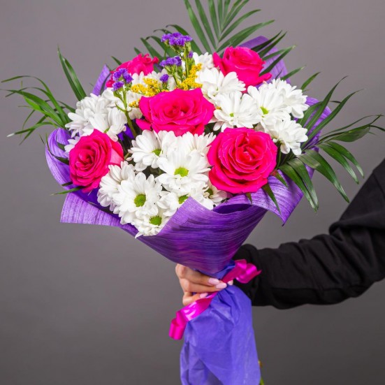 Отличный букет из небольших розочек. Свежие цветы, надеюсь простоят долго. Оформила заказ, перезвонили и уточнили нужную для меня дату и время доставки. Спасибо был приятно удевлен