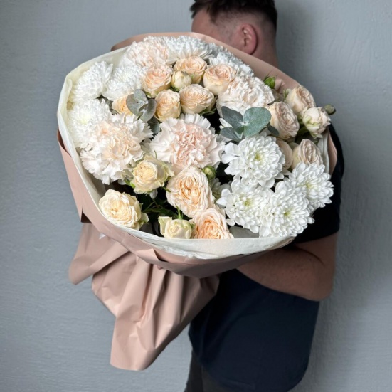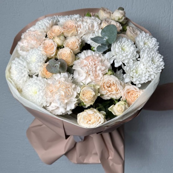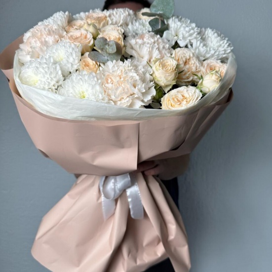 Букет из пионовидных роз и хризантем в Кингисеппе
