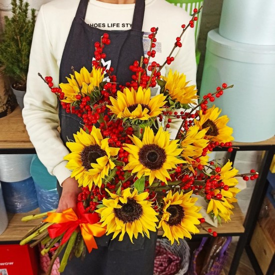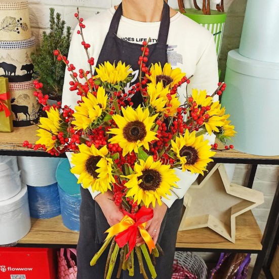 Букет «Подсолнухов и рябины» в Кингисеппе