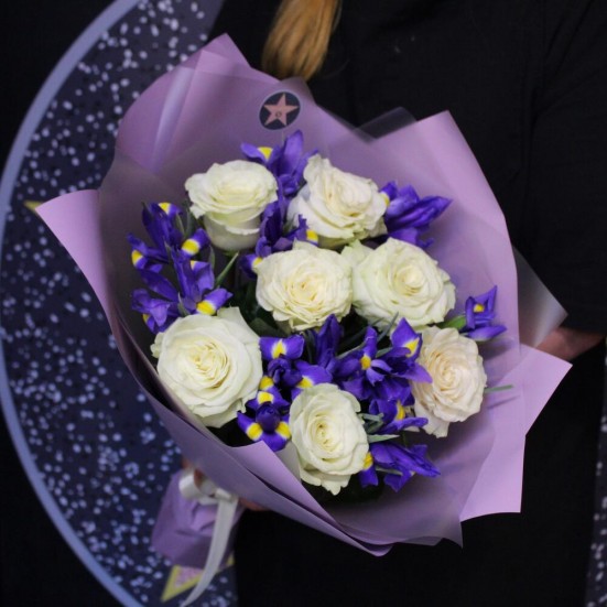 Букет из роз и ирисов