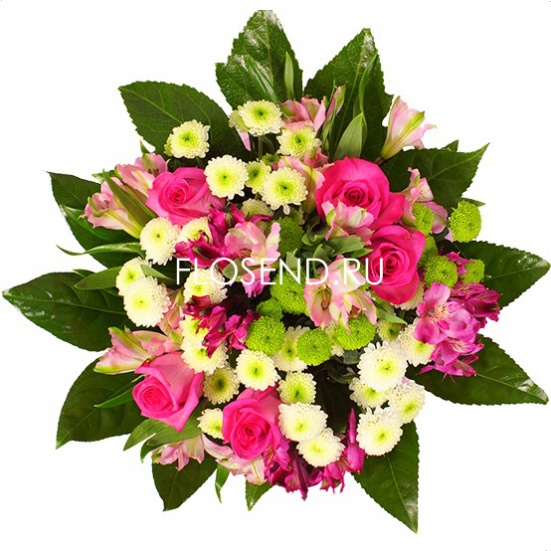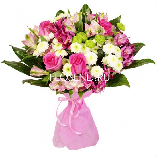 Букет из роз, хризантем и альстромерий