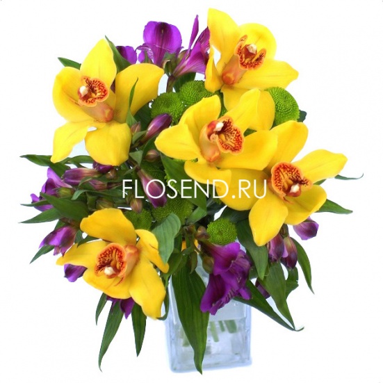 Букет желтых орхидей и альстромерий в Кингисеппе