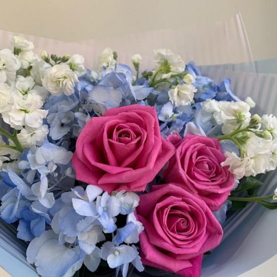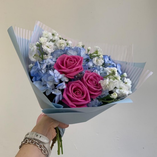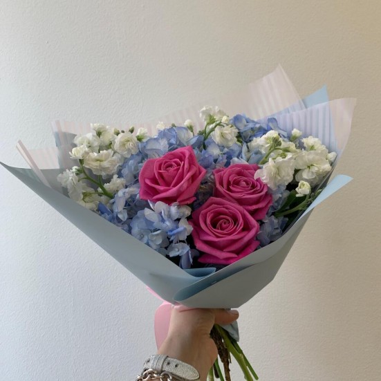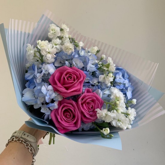 Букет с голубой гортензией и другими цветами в Кингисеппе