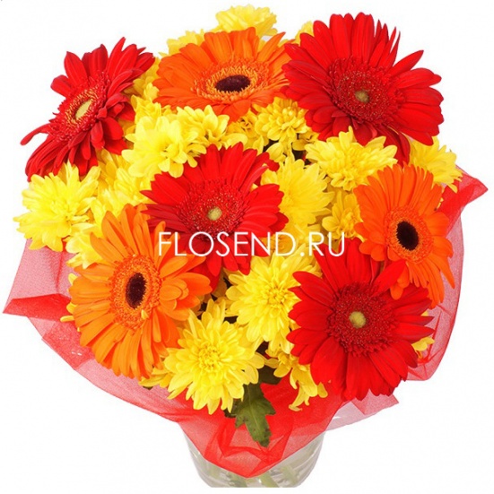 Букет из красных гербер и желтых хризантем в Кингисеппе